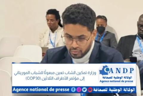 أعلنت وزارة التمكين الشبابي والتشغيل والرياضة والخدمة المدنية عن تعيين عبد الرحمن سيدي المختار مبعوثًا للشباب الموريتاني إلى مؤتمر الأطراف الثلاثين (COP30) لاتفاقية الأمم المتحدة الإطارية حول التغيرات المناخية، المقرر ع