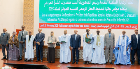 أشرف الرئيس محمد الشيخ الغزواني اليوم الإثنين بقصر المؤتمرات القديم بنواكشوط على حفل تكريم الفائزين بجائزة شنقيط للعام 2025