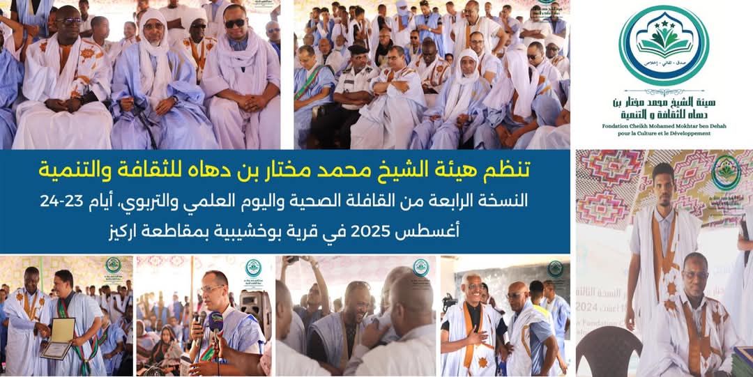 هيئة الشيخ محمد مختار بن دهاه للثقافة والتنمية تنظم موسمها الثقافي والصحي للمرة الرابعة على التوالي يومي 23-24 اغسطس 2025 في قرية بوخشيبية التابعة لمقاطعة اركيز بولاية الترارزه.