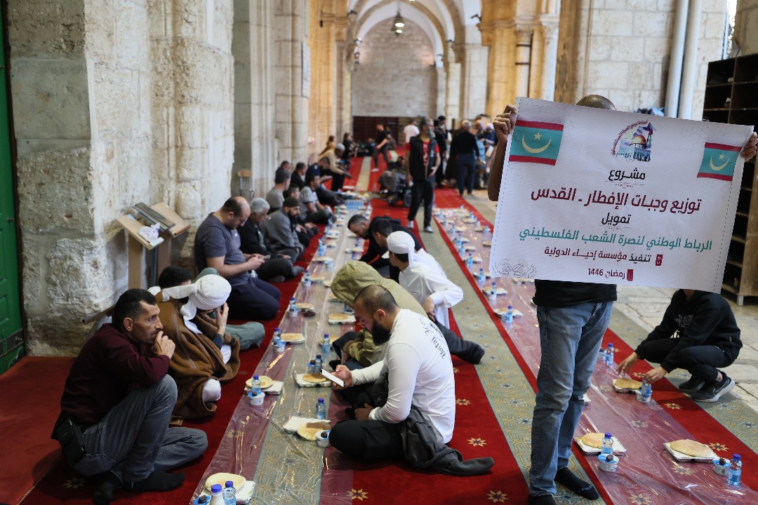 نظم الرباط الوطني لنصرة الشعب الفلسطيني، إفطارا جماعيا في المسجد الأقصى، تم خلاله توزيع آلاف الوجبات الجاهزة على المرابطين والمصلين في المسجد، وذلك في إطار الحملة الرمضانية لإغاثة للسكان في غزة والقدس.