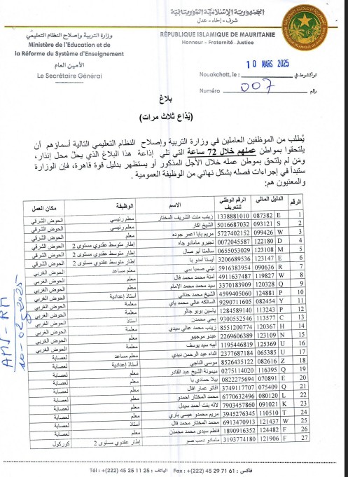 8في إطار المتابعة الصحية للوضعية الوبائية لمرض حمى الوادي المتصدع، أعلنت اليوم الاثنين 15/12/2025 إدارة المصالح البيطرية بوزارة التنمية الحيوانية عن خلو محجر ألاك، التابع لشركة الرحمة للإنتاج الزراعي والحيواني بولاية ل