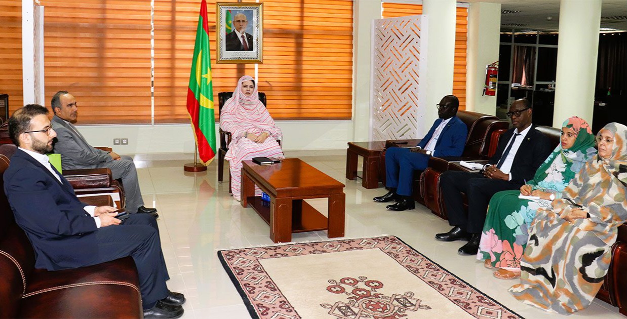 استقبلت مفوضة الأمن الغذائي في موريتانيا، فاطمة بنت خطري، اليوم في نواكشوط، الممثل المقيم لبرنامج الغذاء العالمي في البلاد، عاليو اديونغ، إلى جانب وفد من التعاون الإسباني برئاسة لوسيا ابريتو اريوز، مديرة مكتب العمل الإنساني بالوكالة الإسبانية للتعاون الدولي.