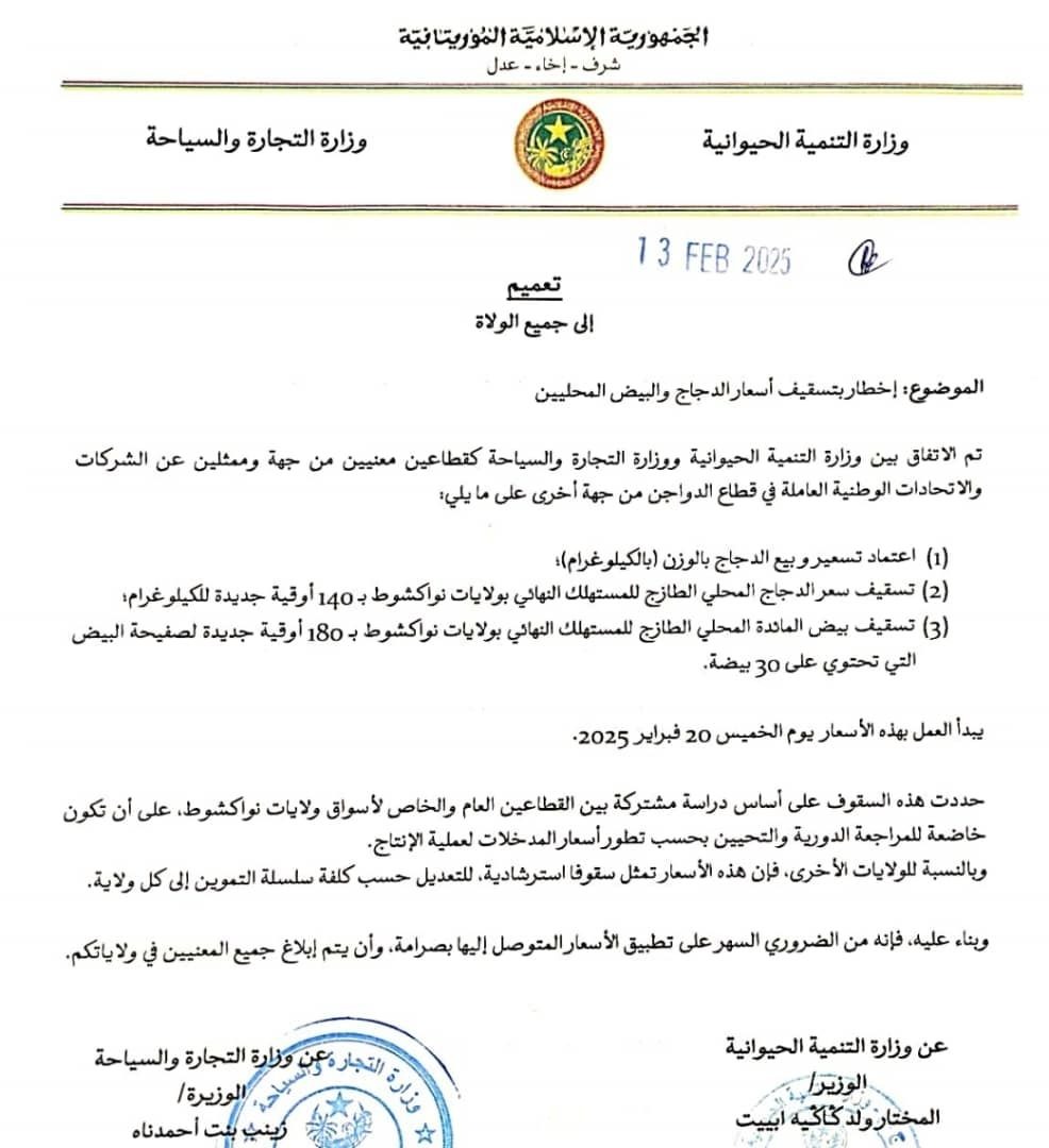 تلقى فخامة رئيس الجمهورية السيد محمد ولد الشيخ الغزواني رسائل التهاني من الملوك والرؤساء ورؤساء الحكومات والشخصيات التالية، بمناسبة الذكرى الخامسة والستين لعيد الاستقلال الوطني: