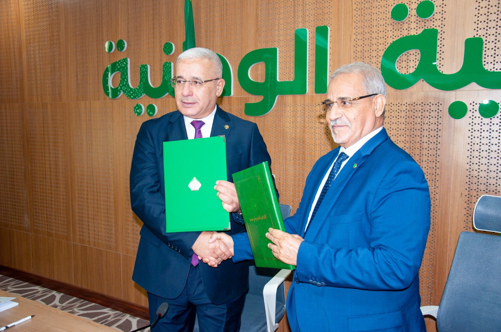 ووقع الاتفاق عن الجانب الموريتاني رئيس الجمعية الوطنية (البرلمان) محمد ولد مكت، وعن الجانب الجزائري رئيس المجلس الشعبي الوطني الجزائري (البرلمان) إبراهيم بوغالي.