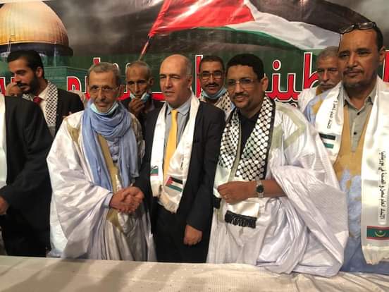 حضررئيس اللجنة المستقلة للانتخابات السياسي المخضرم السيد محمد فال ولد بلال تظاهرة داعمة للقضية الفلسطينة في دار الشباب القديمة مع اتحادات نقابية و جماهير شبابية ثائرة حماسية - جهادية - فصائلية - فتحية - موريتانية أبية.