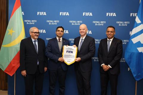 بحث وزير تمكين الشباب والتشغيل والرياضة والخدمة المدنية محمد عبد الله لولي مع رئيس الاتحاد الدولي لكرة القدم جياني إنفانتينو الشراكة القائمة بين الوزارة والاتحاد الدولي لكرة القدم والاتحادية الموريتانية لكرة القدم ولا س