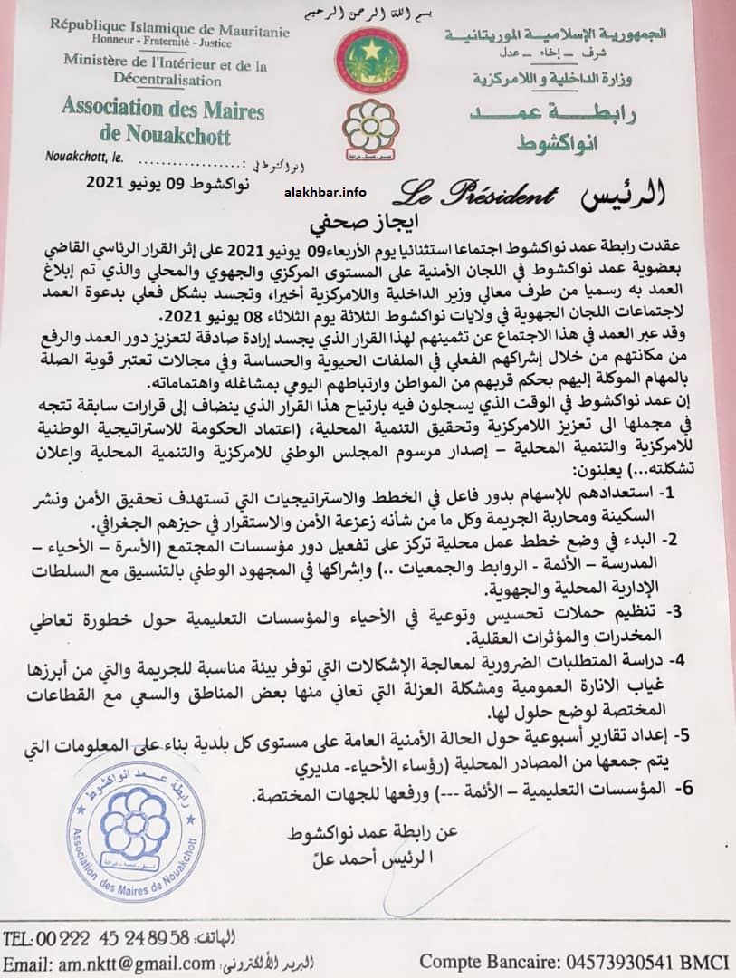 باسم سكان ءادواب والترحيل ولمغيط ليطلقونها صيحة مدوية الى فخامة الرئيس محمد ولد الشيخ محمداحمد ولد الغزوانى يطالبونه فيها بالاستعانة بصوت الحق الدكتور الخامس الذي ساعد الأحياء العشوائية فى مشكل الحصول على الماء الشروب وتوزيع سلاة غذائية على المواطنين الفقراء ومن هنا فإننا نطالب الرئيس بتعين صوت الحق الخامس فى مكان يمكنه من خلاله