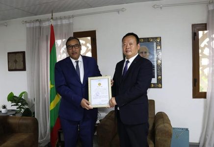 كرم وزير التعليم العالي والبحث العلمي، يعقوب ولد أمين، اليوم الإثنين بمكتبه في نواكشوط، مدير معهد “كونفوشيوس” لتعليم اللغة الصينية، غو غوانغ وي، بمناسبة انتهاء مأموريته.